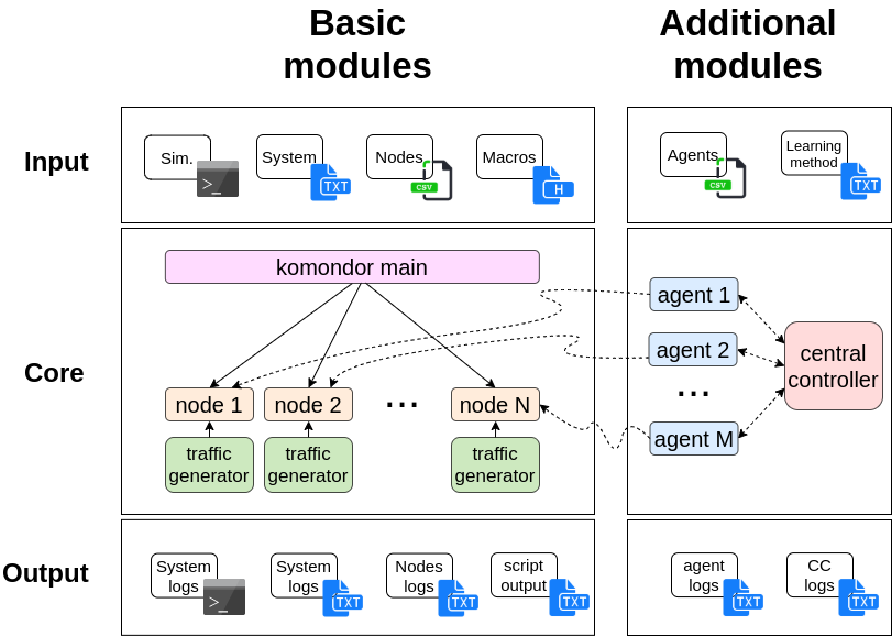 Komondor is an IEEE 802.11ax-oriented network simulator written in C/C++. It allows simulating high-density WLAN deployments in a cost-effective manner so that large data sets can be created with low complexity. Komondor, besides including 802.11ax features like Dynamic Channel Bonding (DCB) or Spatial Reuse (SR), provides in-simulation Machine Learning (ML) functionalities, mostly oriented to online learning and Reinforcement Learning (RL).
