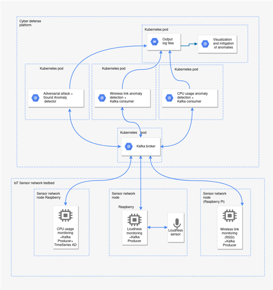 • Low-latency real-time Communication between IoT testbed and Cyber defense platform, based on Apache Kafka.